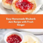 This easy rhubarb jam recipe uses a simple conserve method to produce delicious homemade jam with just rhubarb, sugar, ginger, and lemon juice. Perfect for toast or crumpets, it requires no pectin or preserving sugar and includes a soothing steeping time for enhanced flavor.