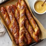 These homemade German soft pretzel sticks are easy to make and irresistibly delicious, featuring a golden crust and a tender, chewy inside perfect for snacking or serving with your favorite dips.
