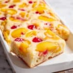 This simple tinned fruit cake is a quick and easy upside-down fruit salad cake made with just three ingredients. It’s vegan, fat free, and perfect as a fun, frugal treat that’s even better the next day.
