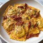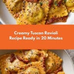 Keywords: Tuscan ravioli, easy pasta recipe, sun-dried tomato sauce, creamy ravioli sauce, 15-minute dinner