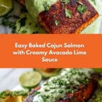 Keywords: Baked Cajun Salmon, Avocado Lime Sauce, Healthy Salmon Recipe, Easy Baked Salmon, Cajun Seafood