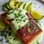 - Serve: Serve the salmon with a generous drizzle of the Avocado Lime Sauce on top. Garnish with chopped cilantro, if desired.