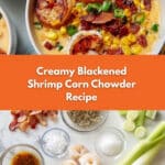 Keywords: blackened shrimp, corn chowder, bacon, creamy soup, Cajun seafood chowder, comfort food, shrimp soup, easy dinner