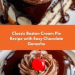 This classic Boston Cream Pie features a tender vanilla cake layered with creamy pastry custard and topped with a rich chocolate ganache, perfect for an elegant dessert.