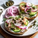 This recipe shines because it uses the method of simple toasting to develop a satisfying crunch on the bagel, creating a sturdy base for the toppings. The King Oscar Brisling Sardines, preserved in extra virgin olive oil with white vinegar and capers, bring incredible depth and tang without overpowering the fresh vegetables. Spreading whipped cream cheese first not only adds creamy richness but also prevents the bagel from getting soggy, ensuring each bite is texturally pleasing. The layering of thinly sliced cucumber, radish, and red onion adds crispness and brightness that perfectly complement the sardines’ saltiness.