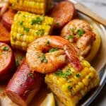 This flavorful Cajun Shrimp Boil combines tender shrimp, smoky andouille sausage, baby potatoes, and sweet corn, all cooked in a spicy seasoned broth and finished with a zesty garlic butter sauce.