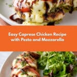 Keywords: Caprese Chicken, baked chicken recipe, pesto chicken, Italian chicken dinner, mozzarella chicken
