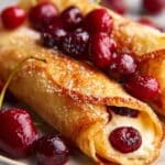 These Cherry Cheesecake Egg Rolls are a delightful dessert combining creamy cheesecake filling with sweet cherry pie filling, wrapped in crispy fried egg roll wrappers for a fun and indulgent treat.
