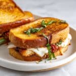 - Add Fresh Basil & Complete Sandwich: Remove the sandwiches from the oven, garnish with freshly chopped basil for an aromatic finish, then top each with another piece of Texas toast to form a complete sandwich.