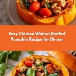 Keywords: stuffed pumpkin recipe, chicken walnut stuffed pumpkin, roasted pumpkin dish, savory stuffed pumpkin, fall dinner recipe