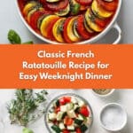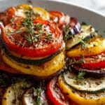 This Classic French Ratatouille recipe is a vibrant and hearty vegetable stew featuring eggplant, zucchini, bell peppers, and tomatoes, simmered to perfection with aromatic herbs. A traditional Provençal dish, it can be served as a comforting main or a flavorful side, offering a delicious way to enjoy fresh summer vegetables.
