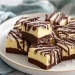 These Coconut Fudge Bars combine a crunchy chocolate cookie base with a smooth, glossy coconut and white chocolate filling, finished with a milk chocolate coating. Infused with coconut and peppermint extracts, they offer a delightful blend of creamy, rich, and refreshing flavors, perfect for a sweet treat or festive dessert.