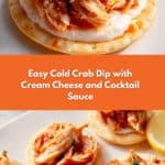 Keywords: cold crab dip, cream cheese dip, cocktail sauce crab dip, easy appetizer, seafood dip