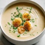 This creamy garlic potato soup combines tender roasted garlic and smooth potatoes in a comforting and velvety blend, perfect for a cozy meal.