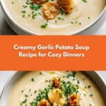 Keywords: creamy garlic potato soup, roasted garlic soup, vegetarian potato soup, easy creamy soup, comforting soup recipe