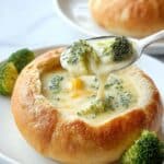 This creamy gluten free broccoli cheddar soup is a comforting blend of tender broccoli, sharp cheddar cheese, and a rich, velvety base, perfect served in a bowl or a gluten free artisan bread bowl for a cozy meal.