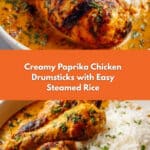 PrintCreamy Paprika Chicken Drumsticks with Steamed Rice Recipe