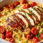 Keywords: Sun Dried Tomato Alfredo Pasta, Grilled Chicken Pasta, Creamy Italian Pasta, Fettuccine Alfredo with Chicken, Easy Chicken Alfredo Recipe