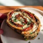 Slice your roll into 1-2 inch pinwheels, revealing beautiful spirals of vibrant fillings, perfect for serving as a colorful and tasty appetizer or light snack.