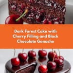 Keywords: Dark Forest Cake, vegan chocolate cake, cherry filling, black chocolate ganache, plant-based dessert