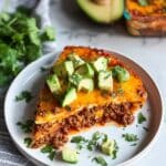 Scoop out slices and garnish with sour cream, fresh avocado slices or mash, and a sprinkle of cilantro for a fresh burst that brightens the rich flavors.