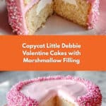 Keywords: Valentine cakes, copycat Little Debbie, marshmallow filling, pink almond bark, heart-shaped cake