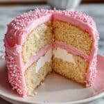 These delightful copycat Little Debbie Valentine Cakes feature tender white cake layers with a fluffy marshmallow filling, all coated in a smooth pink almond bark glaze, perfect for a festive treat.