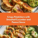 - Assemble dish: On a plate, arrange crispy potstickers alongside smashed cucumbers. Drizzle with peanut sauce and garnish with cilantro and sesame seeds or peanuts.