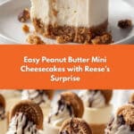 Keywords: mini peanut butter cheesecakes, Nutter Butter crust, peanut butter dessert, Reese’s peanut butter cups recipe, easy cheesecake bites