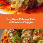 Keywords: Napa cabbage rolls, vegan cabbage rolls, tofu cabbage rolls, Asian vegetarian recipe, easy cabbage roll recipe
