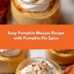Keywords: pumpkin mousse, no egg mousse, roasted pumpkin dessert, easy pumpkin dessert, fall dessert, pumpkin pie spice mousse