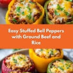 Keywords: stuffed bell peppers, easy dinner, ground beef recipe, stuffed peppers with rice, baked stuffed peppers, family meal, cheesy stuffed peppers