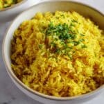 This turmeric rice freezes well—freeze in portioned containers for up to 1 month. Thaw overnight in the fridge before reheating.