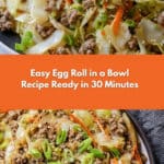 Keep any leftover egg roll in a bowl in an airtight container in the refrigerator for up to 3 days. The flavors actually deepen overnight, making it even tastier the next day.