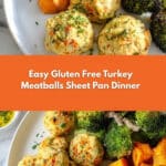 Keywords: gluten free turkey meatballs, sheet pan dinner, turmeric ginger meatballs, healthy turkey recipe, easy baked meatballs