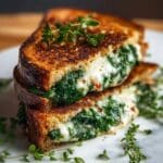 This Gourmet Mediterranean Spinach Grilled Cheese is a flavorful twist on a classic sandwich, combining sautéed garlic spinach with melty mozzarella and optional feta cheese grilled to golden perfection. Perfect for a quick, tasty meal with Mediterranean flair.