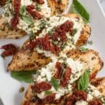 Chicken Bryan is a flavorful grilled chicken breast dish marinated in lemon and Italian seasoning, topped with tangy goat cheese and sun-dried tomatoes, and finished with a rich lemon butter sauce infused with basil and garlic.