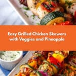 These flavorful grilled chicken skewers are marinated overnight in a zesty blend of pineapple juice, soy sauce, and spices, then grilled to juicy perfection alongside fresh vegetables.