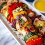 These flavorful grilled chicken skewers are marinated overnight in a zesty blend of pineapple juice, soy sauce, and spices, then grilled to juicy perfection alongside fresh vegetables.