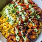 This recipe shines because of a few key techniques and ingredients that bring everything together beautifully. Grilling the shrimp with a smoky paprika and garlic powder coating ensures a flavorful, juicy bite every time. The fresh corn salsa adds brightness and textural contrast with diced red onion and cilantro, turning a simple dish into a vibrant experience. Lastly, the creamy garlic sauce—made by whisking together mayonnaise, sour cream, and fresh aromatics—adds an indulgent yet fresh finish that ties all components together, making this an unforgettable bowl. Plus, grilling as a method adds a charred depth that frying or baking can’t match.