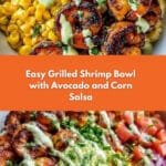 Keywords: Grilled shrimp bowl, avocado shrimp bowl, corn salsa recipe, creamy garlic sauce, healthy shrimp bowl
