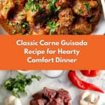 Keywords: Carne Guisada, beef stew, Mexican stew, slow simmered beef, chuck steak recipe, hearty beef dish