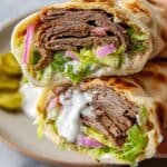 Think fresh parsley, a tangy sprinkle of pickles, and thin slices of red onion to add crunch and brightness to your wraps. Drizzle tahini sauce or creamy tzatziki over the top for that luscious finish.