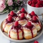 Enjoy these irresistibly soft Sweet Raspberry Buns featuring a pillowy dough filled with tangy raspberry jam, topped with a sweet raspberry glaze. Perfectly baked to golden perfection, these buns are a delightful treat to brighten your day.