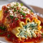 This delightful Lasagna Roll Ups recipe features tender lasagna noodles filled with a creamy ricotta and spinach mixture, baked in marinara sauce and topped with melted mozzarella and Parmesan cheese for a comforting Italian-inspired dish.