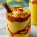 Dip the rims of your serving glasses into Chamoy sauce, making sure to coat the edges generously. Then, roll the rims in Tajín seasoning to create a spicy, tangy border that immediately awakens your senses the moment you bring the glass to your lips.