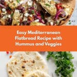 Keywords: Mediterranean flatbread, hummus flatbread, easy appetizer, vegetarian flatbread, quick flatbread recipe, naan pizza, healthy snack