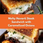 Keywords: steak sandwich, havarti cheese, caramelized onions, herb butter, comfort food, easy dinner, quick sandwich