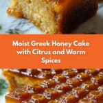 Keywords: Greek honey cake, Mediterranean cake, honey syrup cake, moist cake, traditional Greek dessert, cinnamon honey cake, citrus zest cake