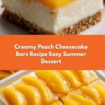 Keywords: Peach cheesecake bars, creamy cheesecake dessert, summer dessert recipe, easy cheesecake bars, peach topping cheesecake